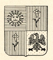 ARMA: Inquartato: nel 1° di azzurro al sole d’oro; nel 2° e 3° di rosso al giglio di giardino d’argento con lo stelo reciso; nel 4° d’oro all’aquila di nero.