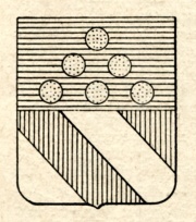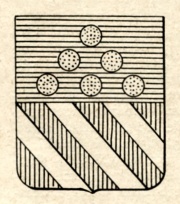 Alias: Troncato: nel 1° d’azzurro ai sei bizanti, ordinati 1, 2 e 3; nel 2° bandato di rosso e argento di dieci pezzi. (Raccolta Camozzi, 3369). Tomba a S. Benedetto di Giovan Battista Tomini, nobile di Bergamo, 1678.