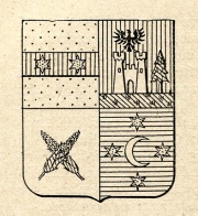 ARMA: Inquartato: nel 1° d’oro alla fascia di rosso carica di due stelle di sei raggi del campo; nel 2° di rosso al castello d’argento, sostenente un’aquila di nero, cucita, sinistrato da un pino al naturale nodrito nella pianura erbosa; nel 3° d’argento a due pannocchie gambute, fogliate, recise e decussate, sporgenti in fuori, al naturale; nel 4° di azzurro a quattro stelle di sei raggi, d’oro, ordinate in croce e circondanti la mezzaluna d’argento calante (Diploma 28 febbraio 1839).