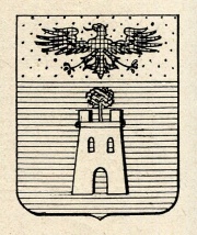 ARMA: D’azzurro alla torre d’argento cimata da un albero al naturale nodrito fra due merli; col capo d’oro carico di un’aquila di nero.