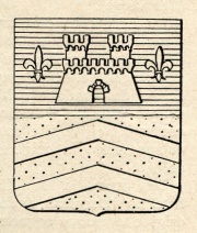 Alias: Troncato: nel 1° d’azzurro al castello accostato ai lati da un fiordaliso, il tutto d’argento; nel 2° fasciato increspato d’argento e d’oro. (Raccolta Muletti, n. 197; Camozzi, n. 1963).