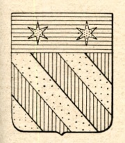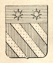 Alias: Di rosso a tre bande d’oro col capo d’azzurro carico di due stelle di otto raggi d’oro.