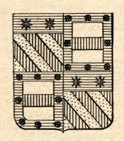 Alias: Come sopra, ma nel 2° partito di rosso e d’argento con le pezze, dell’uno all’altro. (Raccolta Pagano, pag. 133).