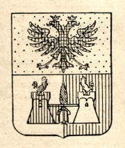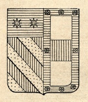 ARMA: Inquartato: nel 1° e nel 4° bandato di rosso e d’oro al capo d’azzurro carico di due stelle di otto raggi d’oro; nel 2° e 3° d’argento alla fascia di rosso con la bordura di azzurro carica di otto rose d’oro: 3, 2, 3.