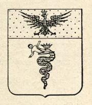 ARMA: D’argento al biscione d’azzurro, coronato d’ oro, ondeggiante in palo, ed ingollante a metà un putto di carnagione, posto in maestà e movente in fascia con le braccia aperte, col capo d’oro, caricato di un’aquila di nero, coronata del campo.