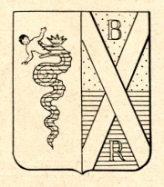 ARMA: Partito: nel 1° d’argento al biscione d’azzurro, coronato d’oro all’antica e ingollante a metà un putto nudo di carnagione, posto in maestà e movente in fascia con le braccia aperte (Visconti); nel 2° troncato d’oro e d’azzurro alla croce di S. Andrea attraversante di argento, accompagnata in capo da una lettera maiuscola B dello stesso e in punta da una R maiuscola d’oro (Brebbia). (Cod. Arald. Lombardo, p. 176, per Decreto 4 agosto 1770 del Trib. Araldico).