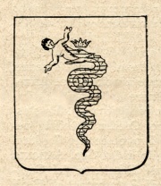 ARMA: D’argento al biscione d’azzurro, coronato d’oro, ondeggiante in palo e ingollante un putto di carnagione. (Codice Araldico Lombardo, pag. 164, per decreto 23 agosto 1781).