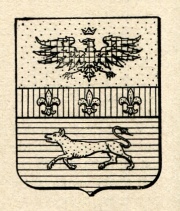ARMA: Troncato: nel 1° d’oro all’aquila di nero coronata del campo; nel 2° d’azzurro al cane passante d’oro ; con la fascia di rosso, caricata da tre gigli d’oro, sulla troncatura.