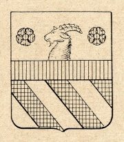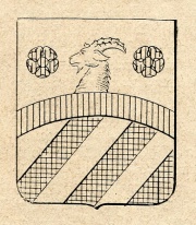 ARMA: Troncato da una fascia di rosso: nel 1° di argento alla testa di capra al naturale nascente, accostata da due rose di rosso; nel 2° bandato di nero e di argento.